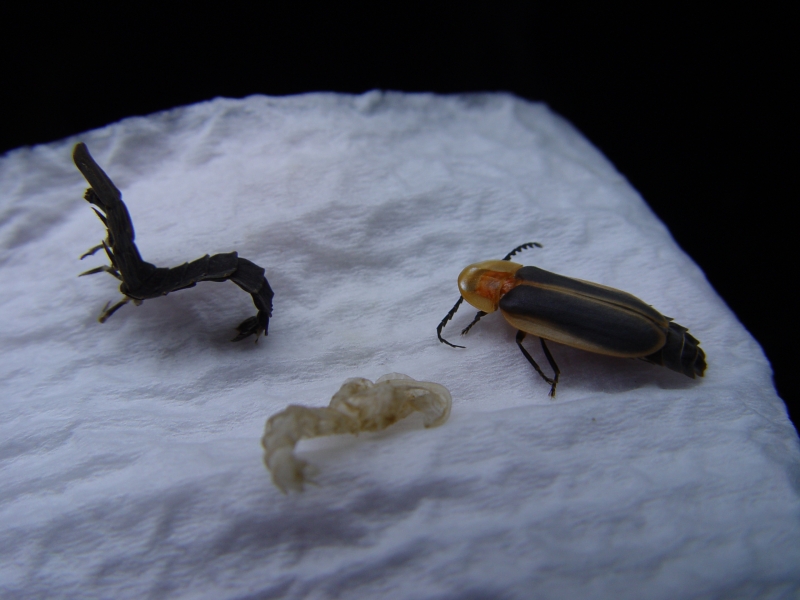 羽化時期 螢火蟲蛹在羽化時,會不斷的蠕動,使身體向前,先由前胸背板中線裂開,再從頭部慢慢的伸出,然後從前胸背板、前足等陸續的伸出後,整隻螢火蟲成蟲才脫離蛹殼,剛羽化的螢火蟲成蟲呈乳白色,經1-2天後,體色才會完全固定。通常羽化的螢火蟲成蟲會在蛹室內停留2-5天,當環境條件合適時,就會爬出土繭的口孔,變成一隻發光的螢火蟲。 發佈於 了解螢火蟲 此分類更多內容: « 成蟲時期 化蛹時期 » 返回頂部